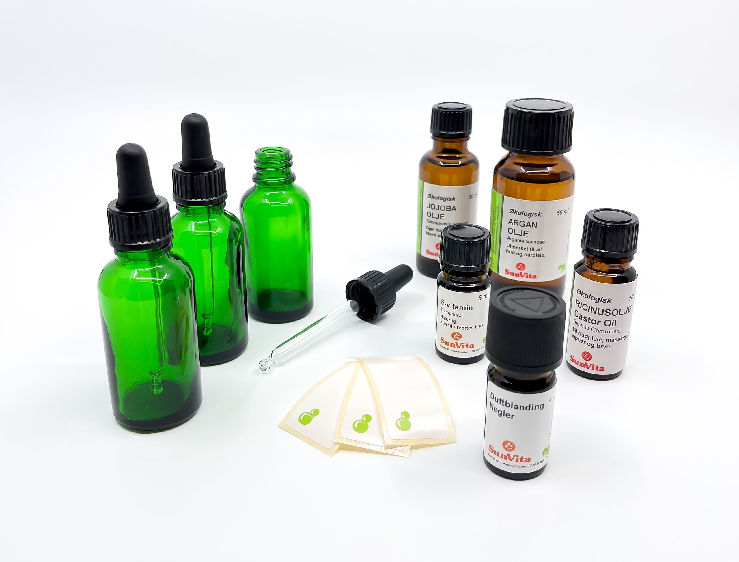 Settet innholder alt du trenger for å kunne lage 3 stk nærende negleolje à 30 ml.